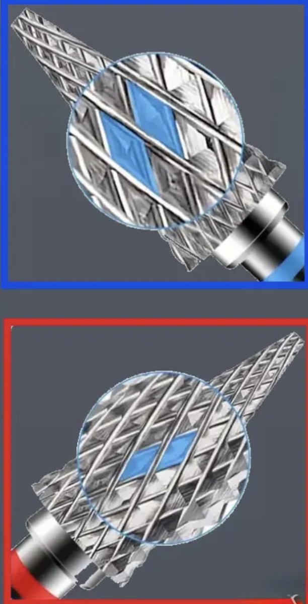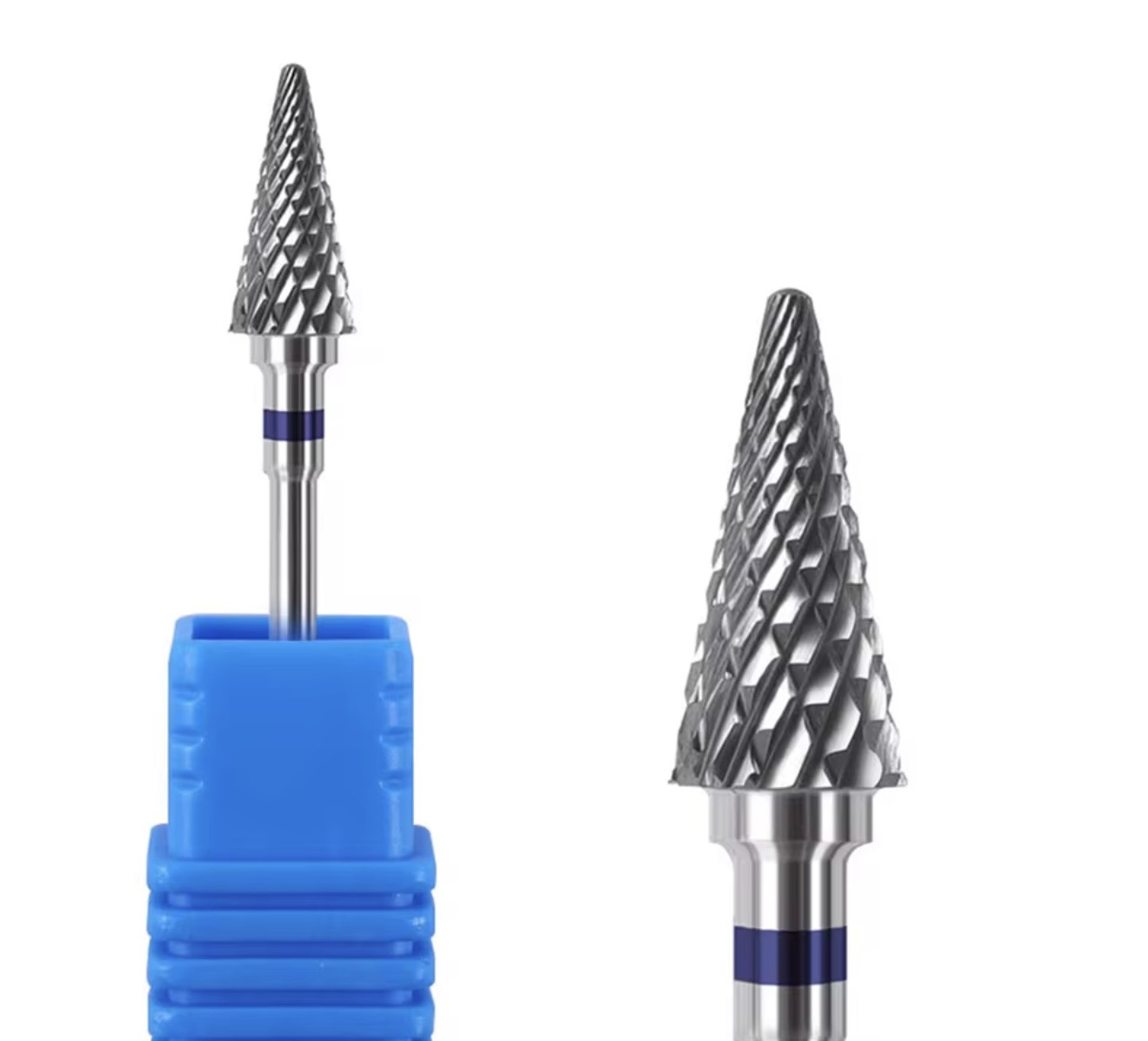 Albastru (mediu) – Ascuțit mediu, poate manipula cu ușurință gelul și gelul acrilic. Datorită tăierilor transversale de-a lungul întregii lungimi a frezei, va fi perfectă pentru dreptaci și stângaci. De asemenea, poate fi folosit cu ușurință fără a utiliza un fișier, economisind timp! tăietor 2 în 1! Datorită suprafeței mari de lucru, atunci când îndepărtați masa sau o pregătiți pentru manichiura ulterioară, lucrați și pe cuticulele, lucrând extrem de precis, separând axul și îndepărtând cea mai mare parte a epiteliului, pregătindu-l pentru manichiura ulterioara. O modalitate precisa si extrem de rapida de a crea o manichiura perfecta! Frezele cu acest tip de tăieturi și formă îndepărtează masa fără a încălzi unghia și a lăsa o suprafață netedă. De asemenea, puteți folosi cu succes frezele pentru pedichiură. Lucrează umed și uscat. Nu uitați să ajustați viteza și claritatea frezei în funcție de abilitățile dvs. și de mașina de frezat!
