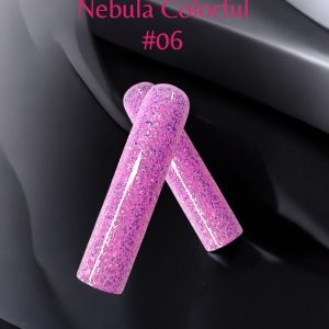 Gelul UV Mesc Nebula Colorful este un produs cu un adaos de foita de diferite marimi destinat manichiurii, care oferă un efect strălucitor și captivant. Acesta conține o bază colorata în care sunt încorporate foite fine de diverse forme, ce reflectă in lumina și creează un efect de „strălucire” pe unghii. Foitele sunt iridescente, metalice, sau în nuanțe vibrante, iar textura gelului este suficient de vâscoasă pentru a permite paietelor să se fixeze pe unghie fără a se scurge. Acest gel se aplică pe unghii, iar apoi se întărește sub lampa UV, oferind un finisaj durabil și rezistent. Este ideal pentru a crea un look festiv sau pentru a adăuga un strop de glamour manichiurii de zi cu zi. Un gel autonivelant cu proprietăți tixotrope va face ca lucrul cu acesta să fie plăcut și rapid, fără teama de scurgeri pe cuticule. Este perfect și pentru metoda „fără pilire”. Foarte rezistent la deteriorări mecanice, gelul dur garantează că manichiura va fi extrem de durabilă și de lungă durată.