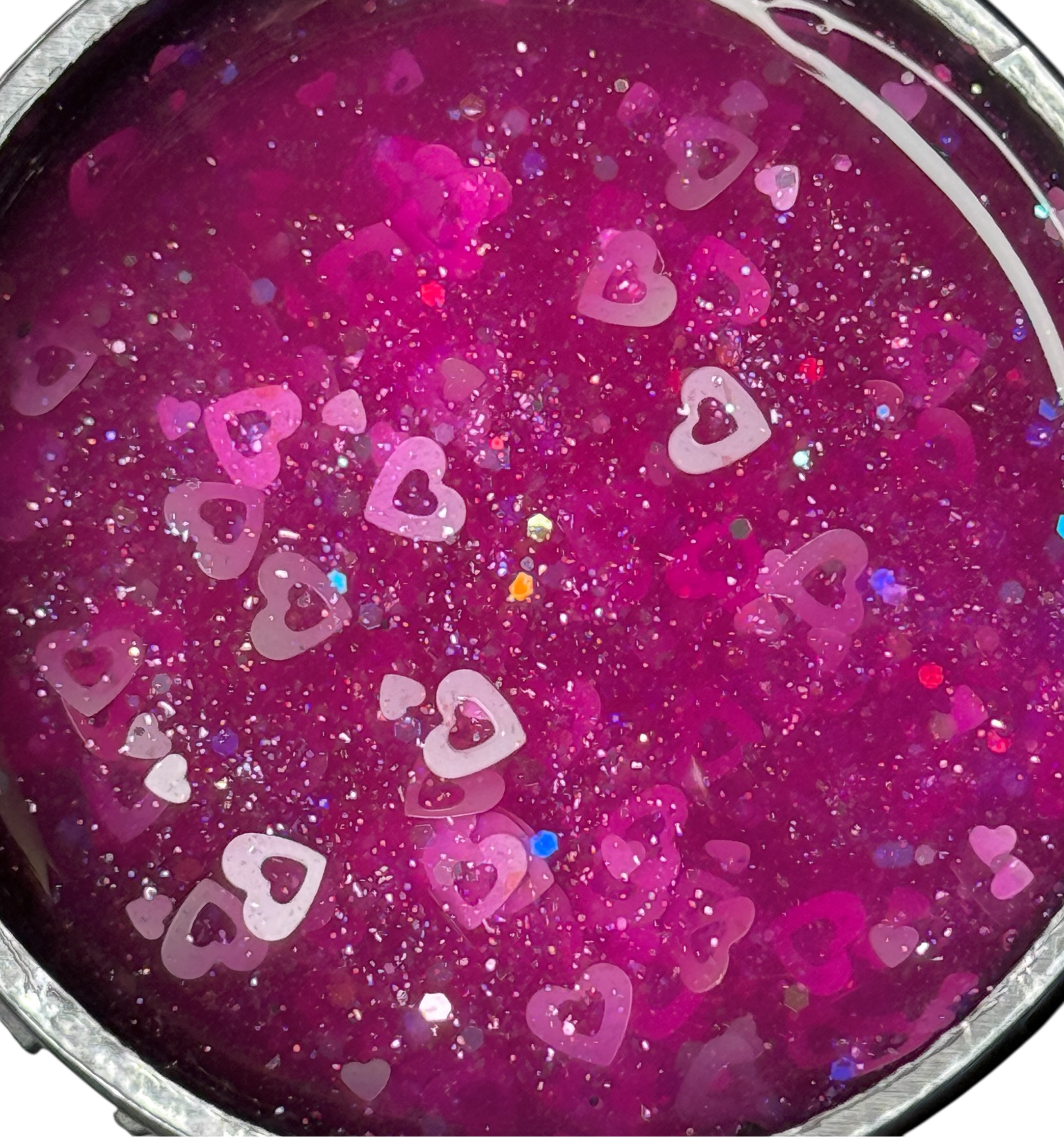 ✔ Culoare transparent pink cu inimioare si sclipici