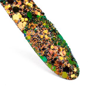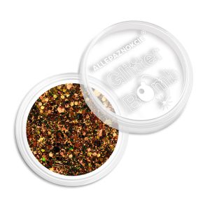 Fulgii Glitter Bomb au un efect spectaculos care te va face să strălucești ca o vedetă de cinema! Fulgii metalici, strălucitori, sunt o compoziție formată din trei particule de dimensiuni diferite, ceea ce face ca structura lor pe unghie să fie inegală și surprinzătoare – de la cercuri delicate și mici, până la cele mai mari hexagoane.