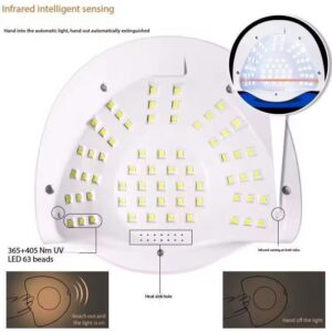 Lampă hibridă UV/LED 288W pentru manichiură și pedichiură, concepută pentru polimerizarea lacurilor hibride, gelurilor și gelurilor acrilice.