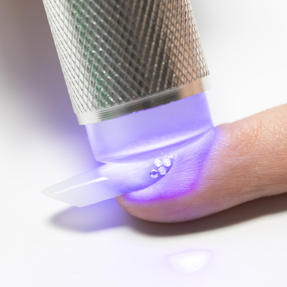 Accelerează-ți munca cu tipsurile reutilizabile, aplică rapid și permanent decorațiuni, strasuri și autocolante. Ștampila din silicon inclusă este perfectă pentru decorațiuni. Carcasa antiderapantă și forma ergonomică asigură că lampa se potrivește perfect și nu alunecă în mână! Lampa dispune de 9 LED-uri eficiente energetic.