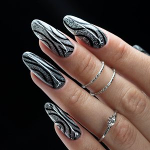 566. Respirație puternică, de grafit, cu o particulă strălucitoare în rolul principal. Dacă vă plac nuanțele închise ale lacurilor hibride – acesta va fi un vis devenit realitate pentru dvs.