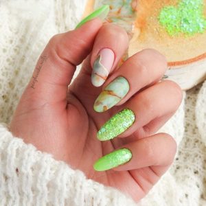O combinație de forme surprinzătoare în frumoase culori pastelate și neon! Varietatea grosimilor elementelor strălucitoare îți va oferi efecte uimitoare și impresia de neuitat că Primavera trebuie să stea pe mâinile tale mult timp! Un lucru este sigur – acest efect creează dependență!