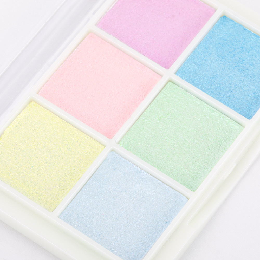 Pudre strălucitoare în 6 culori, ambalate într-o cutie convenabilă, resigilabilă. Aceste pudre vor transforma orice model de unghii într-o suprafață satinată și luminoasă. Unghiile tale vor străluci cu o strălucire incredibilă, de la care cu greu îți vei lua privirea. Formula compactă și presată a pudrelor minimizează praful și risipa de produs. Setul include trei aplicatoare pentru aplicarea pudrelor.